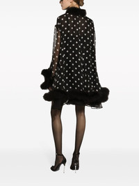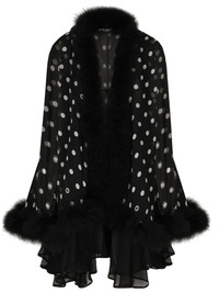 Chiffon cape with polka-dot print and marabou trim