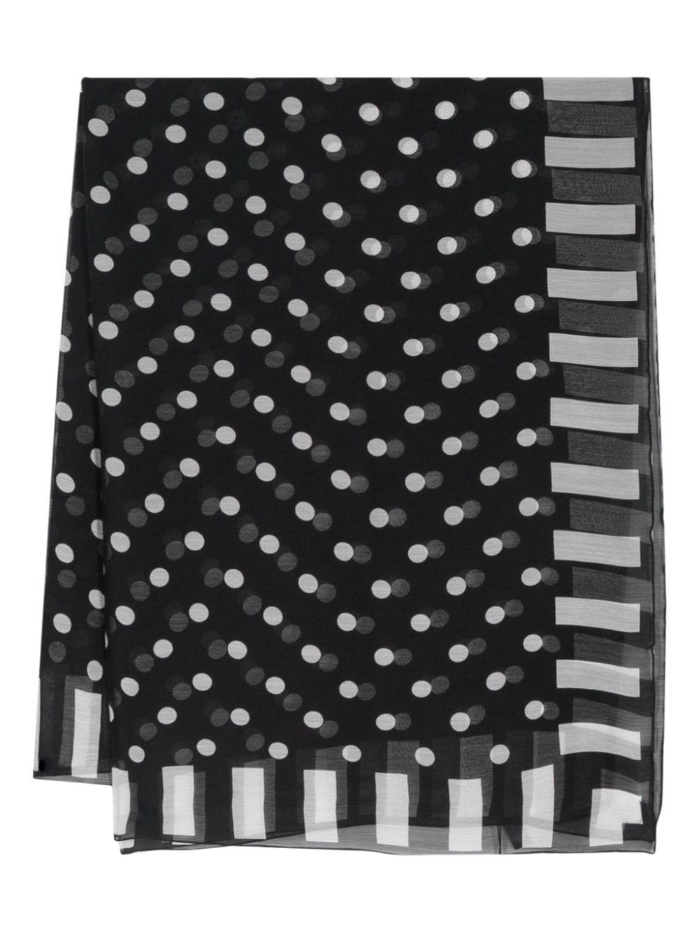polka-dot silk scarf Highlights - Black/white - Silk - Chiffon crepe - Polka dot print - Striped edge - Rectangle shape - Wraparound style - Striped lining Made in Italy Composition Silk 100% SIZE & FIT Measurement LENGTH 74.01 in(188 cm) WIDTH 49.21 in(125 cm)