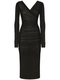 Tulle calf-length dress with draping and polka-dot print