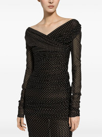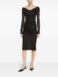 polka-dot tulle midi dress Highlights - Black/white - Tulle panel - Polka dot print - Draped detailing - V-neck - Concealed rear zip fastening - Long sleeves - Mid-length Made in Italy Composition Lining: Nylon 82%, Elastane 18% Outer: Nylon 92%, Elastane 8% SIZE & FIT FittingInformation Designed for a slim fit that sits just away from the body offering a close yet comfortable fit