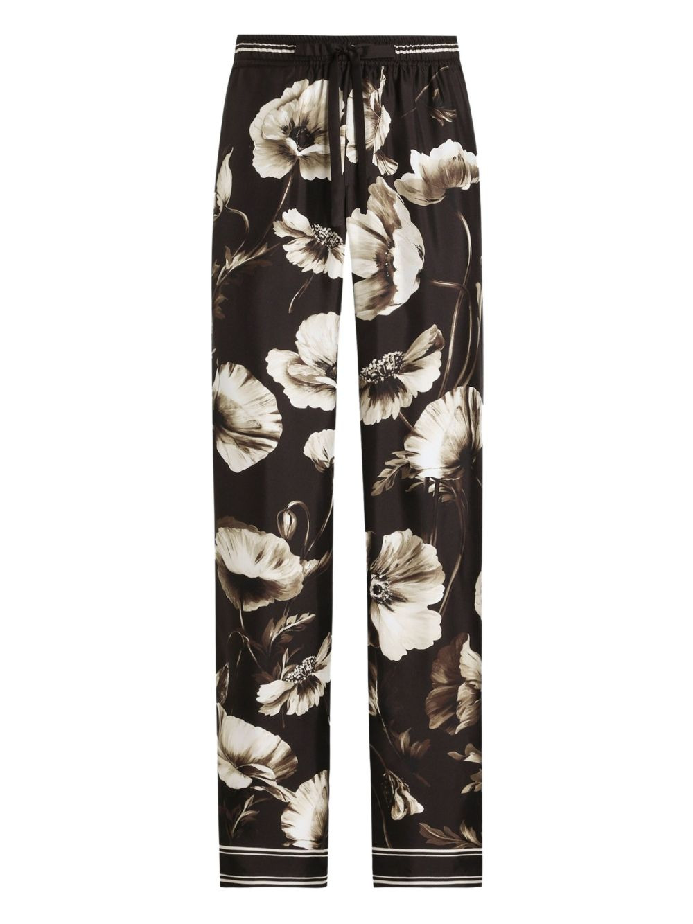 poppy-print drawstring trousers Highlights - Dark brown - Poppy flower print - Drawstring waistband - Piped trim Made in Italy Composition Silk 100% Washing instructions Read Manufacturer Guidelines