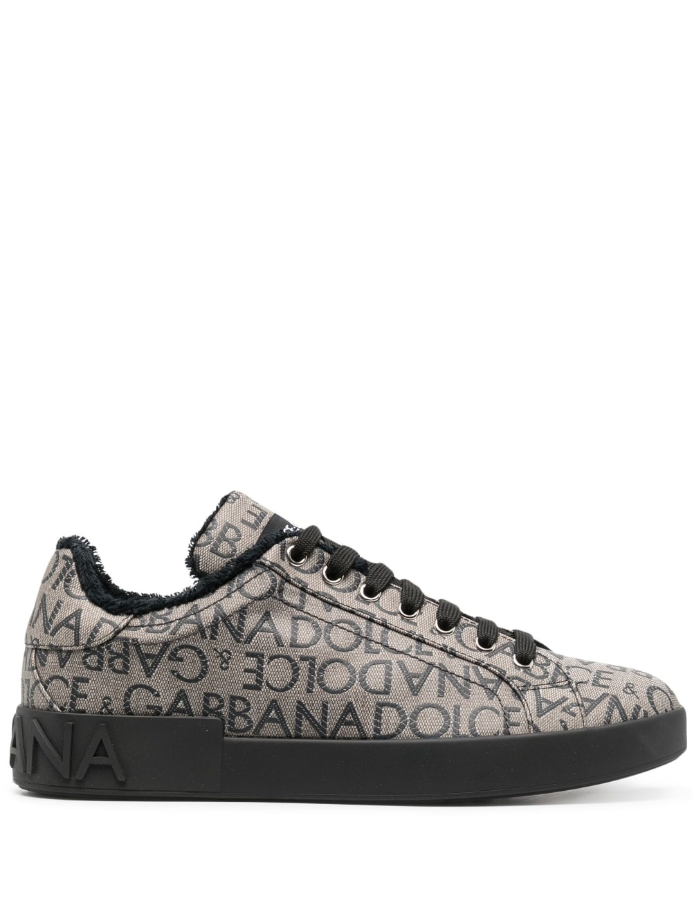 Portofino jacquard sneakers Shaped to a low-rise silhouette, these Dolce & Gabbana trainers feature an all-over coated jacquard logo in black, with a logo patch on the tongue. Branding at the heel adds a signature designer accent and a non-slip rubber outsole offer grip and durability. Highlights - Black/beige - Cotton canvas - All-over logo print - Round toe - Front lace-up fastening - Logo patch at the tongue - Branded insole - Flat rubber sole Made in Italy Composition Outer: Cotton 50%, Polyurethane 30%, Polyester 20% Sole: Rubber 100% Lining: Fabric 100% SIZE & FIT Measurement HEEL 1.96 in(5 cm) Sole height 0.98 in(2.5 cm)
