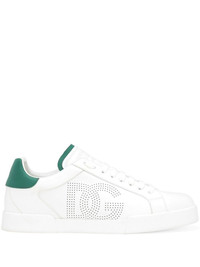 Portofino leather sneakers Highlights - White/multicolour - Calf leather - Colour-block panelled design - Logo print to the side - Perforated embellishment - Round toe - Front lace-up fastening - Branded leather insole - Flat rubber sole Made in Italy Composition Sole: Rubber 100% Lining: Lamb Skin 58%, Polyester 24%, Goat Skin 10%, Rubber 8% Outer: Calf Leather 100%