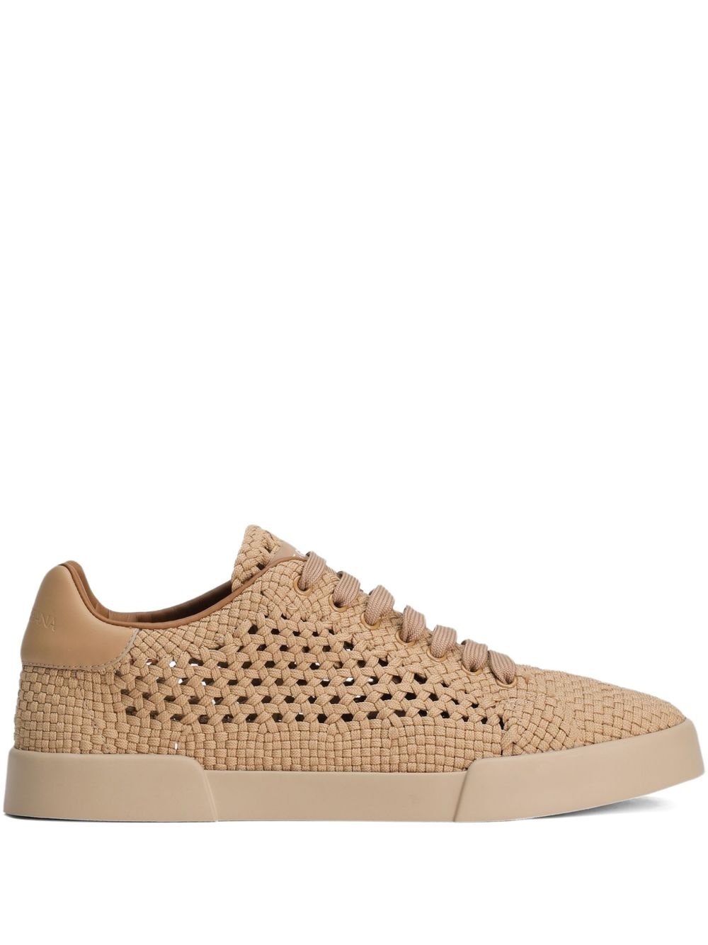 Portofino low-top sneakers Highlights - Beige - Intricate woven design - Tonal lace-up fastening - Cushioned collar - Logo patch tongue Made in Italy Composition Lining: Lambskin 90%, Goat Skin 10% Outer: Polyester 80%, CALFSKIN 20% Sole: Polyethylene vinyl acetate (PEVA) 100%
