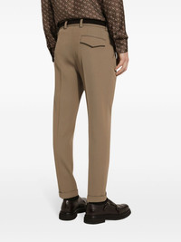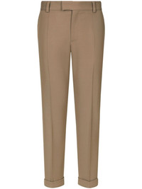 pressed-crease tapered trousers Highlights - Brown - Wool blend - Stretch-design - Belt loops - Pressed crease - Concealed front fastening - Two side slit pockets - Rear flap pocket - Mid-rise - Tapered leg - Turn-up hem Made in Italy Composition Polyester 54%, Wool 44%, Spandex/Elastane 2%