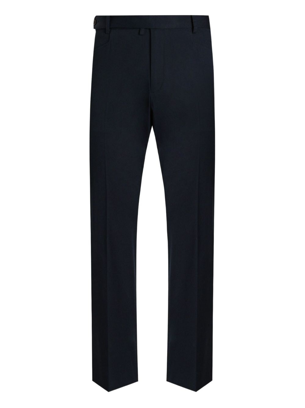 cotton gabardine trousers Highlights - Navy blue - Concealed fly and button fastening - Full fabric belt - Two side slit pockets Made in Italy Composition Cotton 98%, Spandex/Elastane 2%