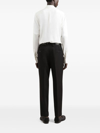 pressed-crease trousers Highlights - Black - Front button and zip fastening - Two side slash pockets - Two rear button-fastening jetted pockets - Belt loops Made in Italy Composition Virgin Wool 80%, Silk 16%, Polyester 4%