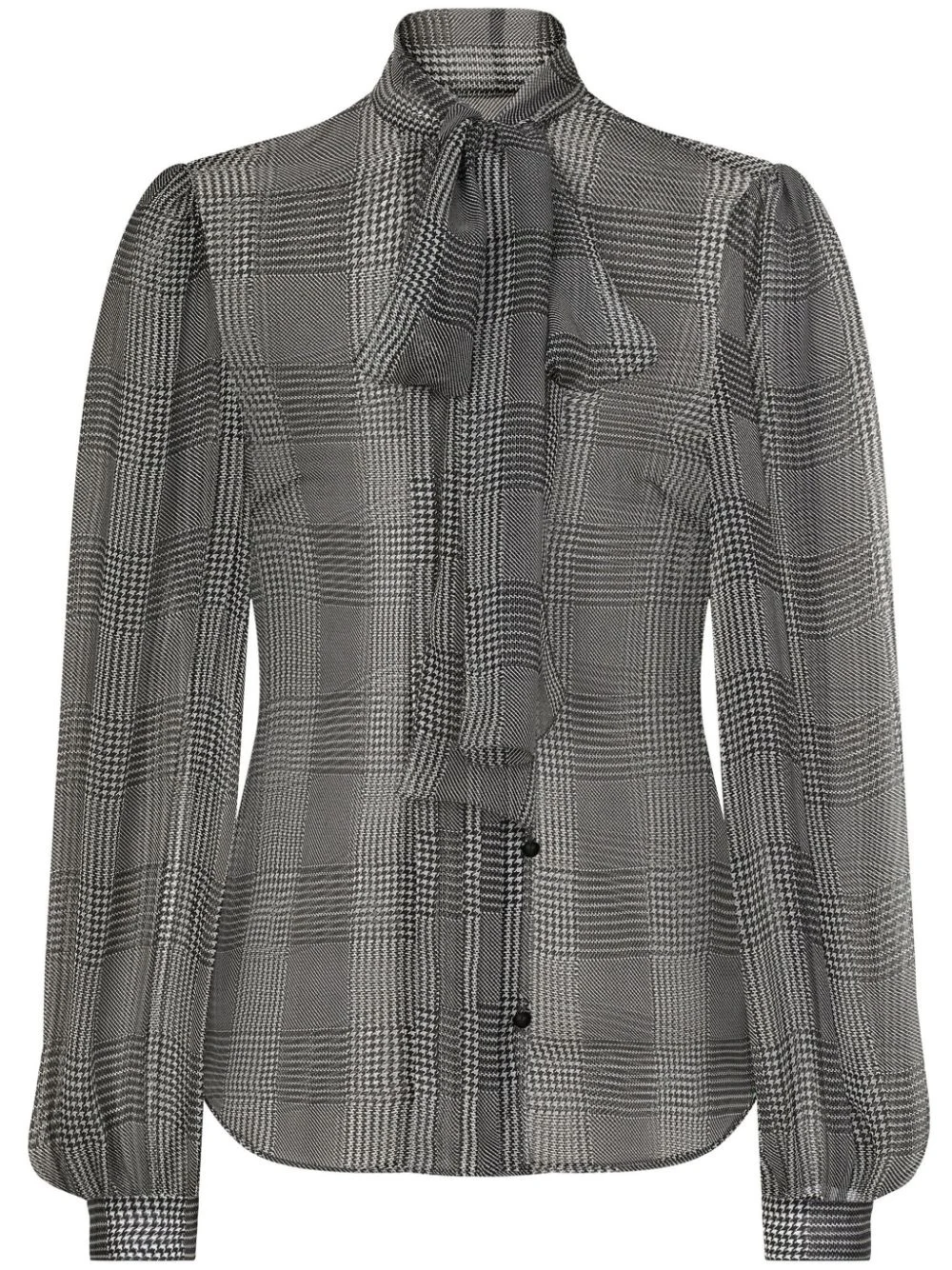 Prince of Wales check blouse Highlights - Grey - Silk - Prince of wales check pattern - Pussy-bow collar - Long puff sleeves - Fitted-cuff sleeves - Front button fastening - Curved hem Made in Italy Composition Silk 100%