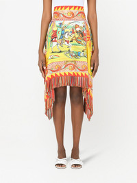 Carretto-print twill miniskirt Let your skirt do the talking. Boasting an all-over graphic print, this Dolce & Gabbana will sure speak for itself. Don't need anything more. Highlights - Multicolour - Silk-rayon blend - Graphic print - High waist - Concealed rear fastening - Asymmetric hem Made in Italy Composition Silk 80%, Rayon 20%