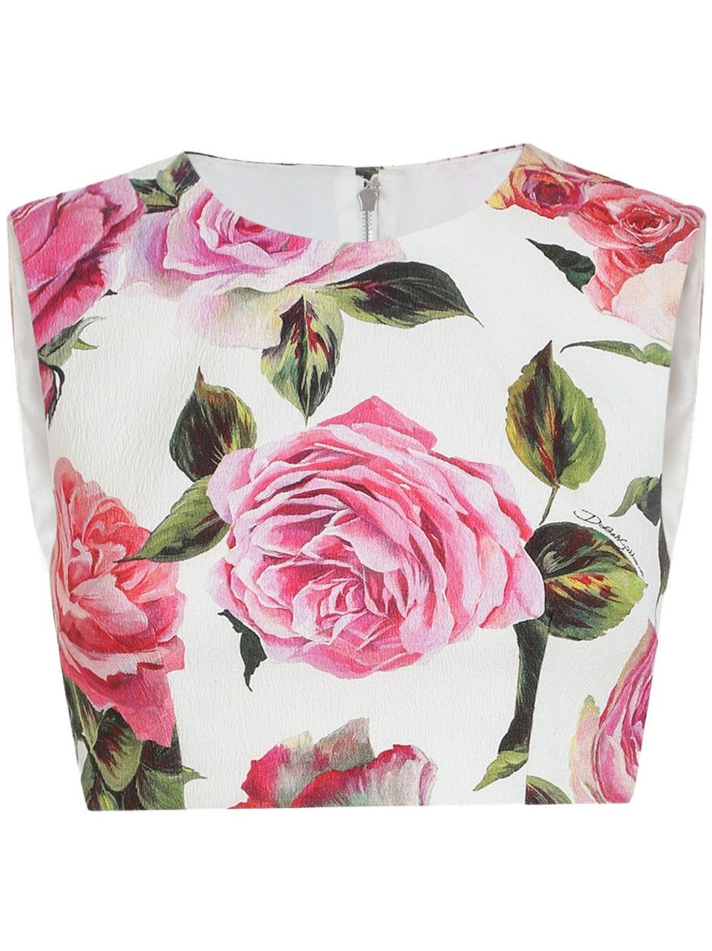 printed crop top Highlights - White - Rear zip fastening - Crew neck - Sleeveless - Straight hem Made in Italy Composition Lining: Silk 92%, Spandex/Elastane 8% Outer: Cotton 59%, Viscose 39%, Spandex/Elastane 1%, Polyamide 1%