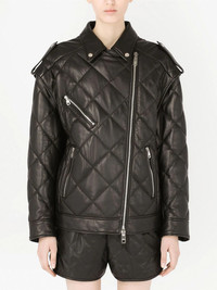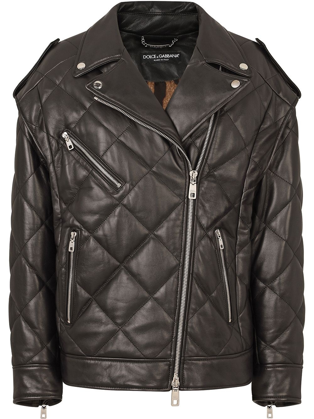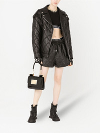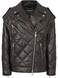 quilted zip-fastening biker jacket Dolce & Gabbana's AW21 catwalk show paid homage to the 1990's. This black lambskin leather biker jacket is detailed with an all-over diamond quilted finish and off-centre front zip fastening. Detachable long sleeves add extra versatility. Made in Italy Composition Lamb Skin 100%