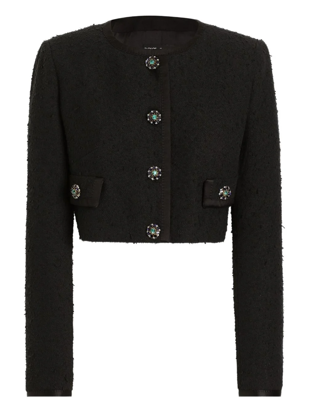 Rachel tweed jacket Highlights - Black - Jewel button detail - Front pockets - Round neck - Long sleeves - Cropped Made in Italy Composition Outer: Cotton 83%, Silk 8%, Polyamide 7%, Polyester 2% Lining: Silk 91%, Elastane 9% Washing instructions Read Manufacturer Guidelines
