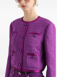 DNA Rachel tweed single-breasted jacket Highlights - Violet purple - Front button fastening - Four front patch pockets - Crew neck - Buttoned cuffs Made in Italy Composition Outer: Cotton 81%, Viscose 9%, Silk 8%, Polyester 2% Lining: Silk 92%, Spandex/Elastane 8% Washing instructions Read Manufacturer Guidelines