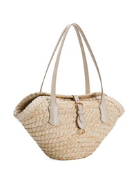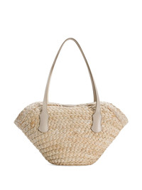 raffia tote bag Highlights - Beige - Adjustable strap to the front - Two long top handles Made in Italy Composition Lining: Corn Leaf 80%, CALFSKIN 20% Outer: Corn Leaf 80%, CALFSKIN 20%