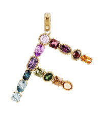 Rainbow alphabet F 18 kt yellow gold charm with multicolor fine gems