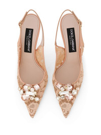 Rainbow Lace 90mm slingback pumps Highlights - Blush beige - Leather - Floral-lace detailing - Crystal embellishment - High stiletto heel - Buckle-fastening slingback strap - Branded footbed - Pointed toe - Logo sole Made in Italy Composition Cotton 100% SIZE & FIT Measurement HEEL 3.54 in(9 cm)