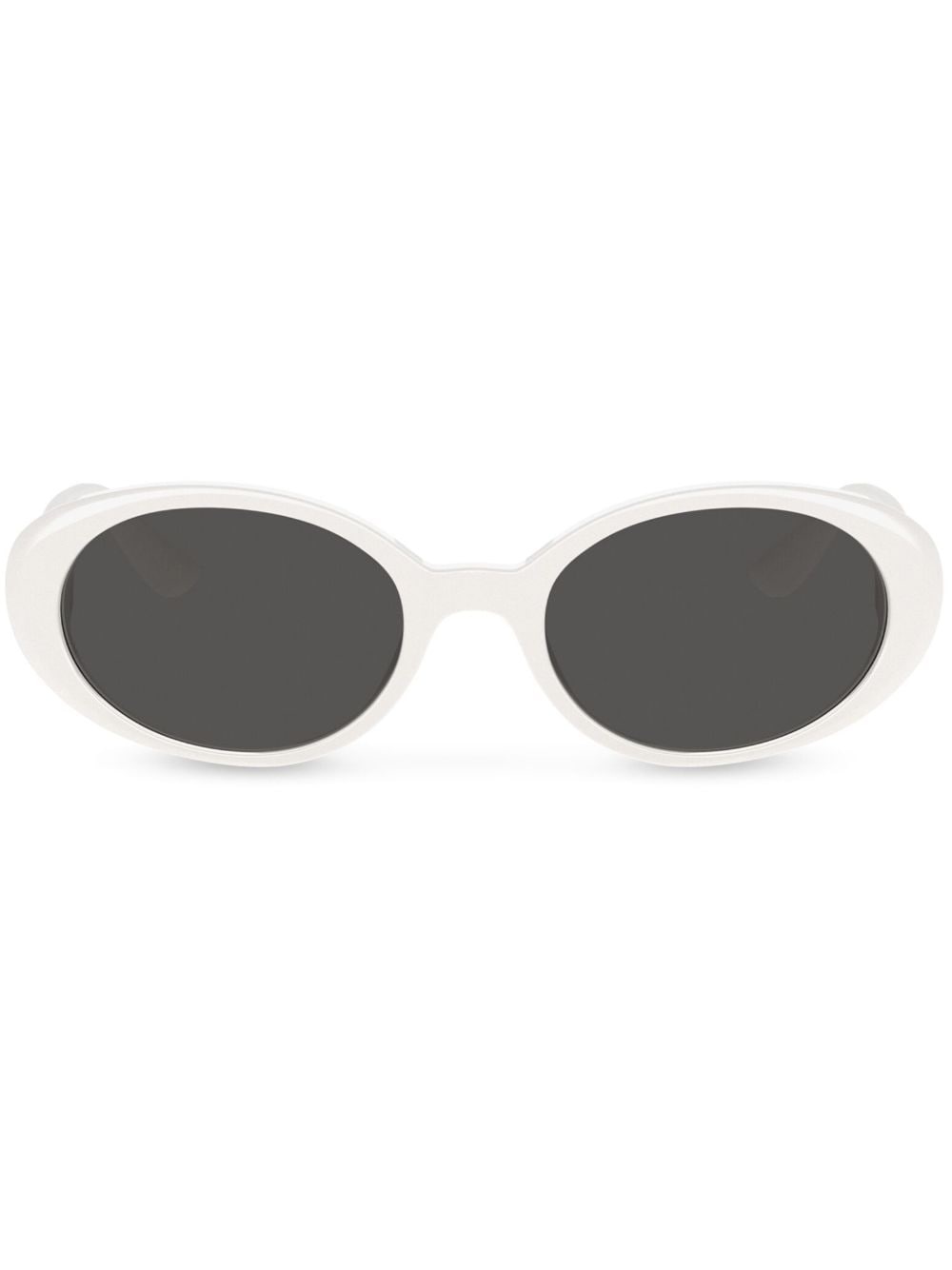 Re-Edition DNA oval-frame sunglasses Dolce & Gabbana's Re-Edition DNA sunglasses showcase the Italian brand's daring style. Inspired by 90s and 2000s styles, the pair boasts round frames. Highlights - White - Acetate - Round frame - Grey tinted lenses - Logo print at the arm - Straight arms - Curved tips - These glasses come with a protective case. Made in Italy Composition Acetate 100%