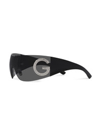 Re-Edition shield-frame sunglasses Highlights - Black - Rhinestone embellishment - Logo plaque - Shield frame - Grey tinted lenses - Nose pads - Straight arms - Curved tips - These glasses come with a protective case. Made in Italy Composition Nylon 100%
