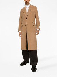 Re-Edition single-breasted coat Dolce & Gabbana pays homage to its rich history with the Re-Edition collection, a reinterpretation of several iconic designs from the 1990s and 2000s. Impeccably tailored, this single-breasted coat is crafted from plush camel hair and finished with a special tag at the left cuff. Highlights - Camel brown - Camel hair - Silk lining - Peak lapels - Chest welt pocket - Front button fastening - Logo patch at the sleeve - Long sleeves - Buttoned cuffs - Two front flap pockets - Rear buttoned flap - Central rear vent - Calf-length Made in Italy Composition Lining: Silk 100% Outer: Camel Hair 100% SIZE & FIT Measurement CHEST 48.81 in(124 cm) SLEEVE LENGTH 27.16 in(69 cm) LENGTH 50.78 in(129 cm) WAIST 45.66 in(116 cm) Washing instructions Read Manufacturer Guidelines