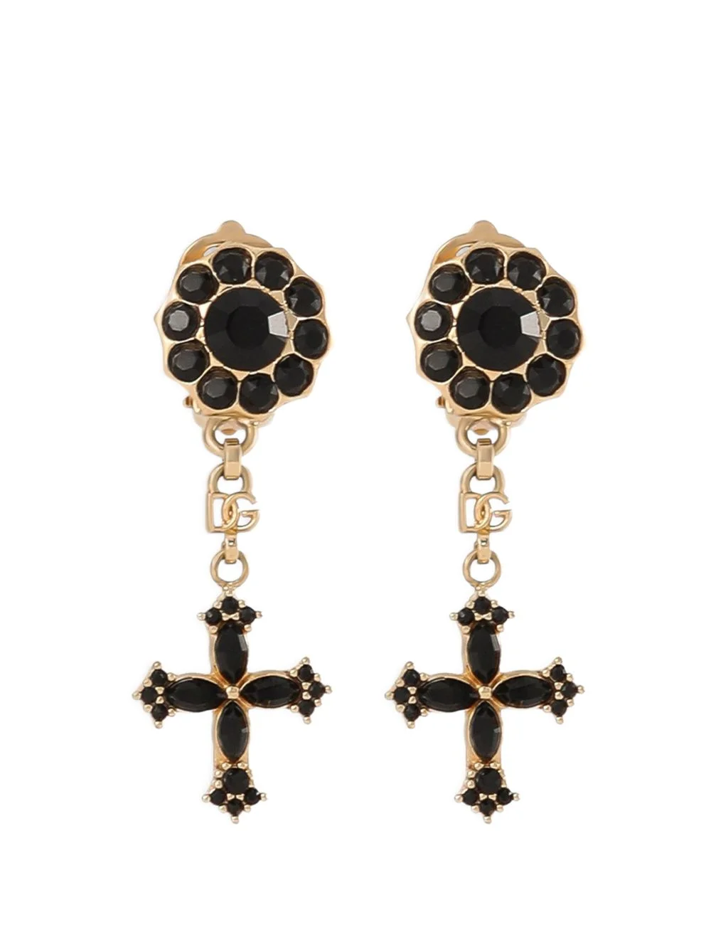 rhinestone-embellished earrings Highlights - Gold-tone/black - Cross pendant - Clip-on fastening - Chain detail - These earrings come as a pair. Made in Italy SIZE & FIT Measurement WIDTH 1.57 in(4 cm)