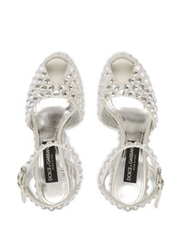 130mm rhinestone-embellished platform pumps Proof of Dolce & Gabbana's bold aesthetic, these block-heel sandals get their eye-catching look from their all-over rhinestone embellishment and thick platform sole. Highlights - Rhinestone-embellished platform sandals from dolce & gabbana featuring silver-tone, leather, rhinestone embellishment, strap detailing, open toe, buckle-fastening ankle strap, platform sole and high block heel. Made in Italy Composition Silk 100%