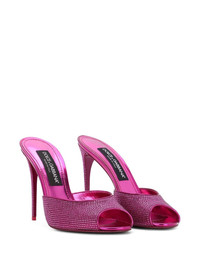 rhinestone-embellished satin sandals Dolce & Gabbana combines tradition with modernity, and these mules are the perfect example. The open-toe silhouette is embellished with all-over rhinestones and set on a high heel, showcasing the brand's exceptional Italian craftsmanship. Highlights - Blush pink - Satin weave - Rhinestone embellishment - Open toe - Branded leather insole - 105mm stiletto heel - Slip-on style Made in Italy Composition Silk 100%