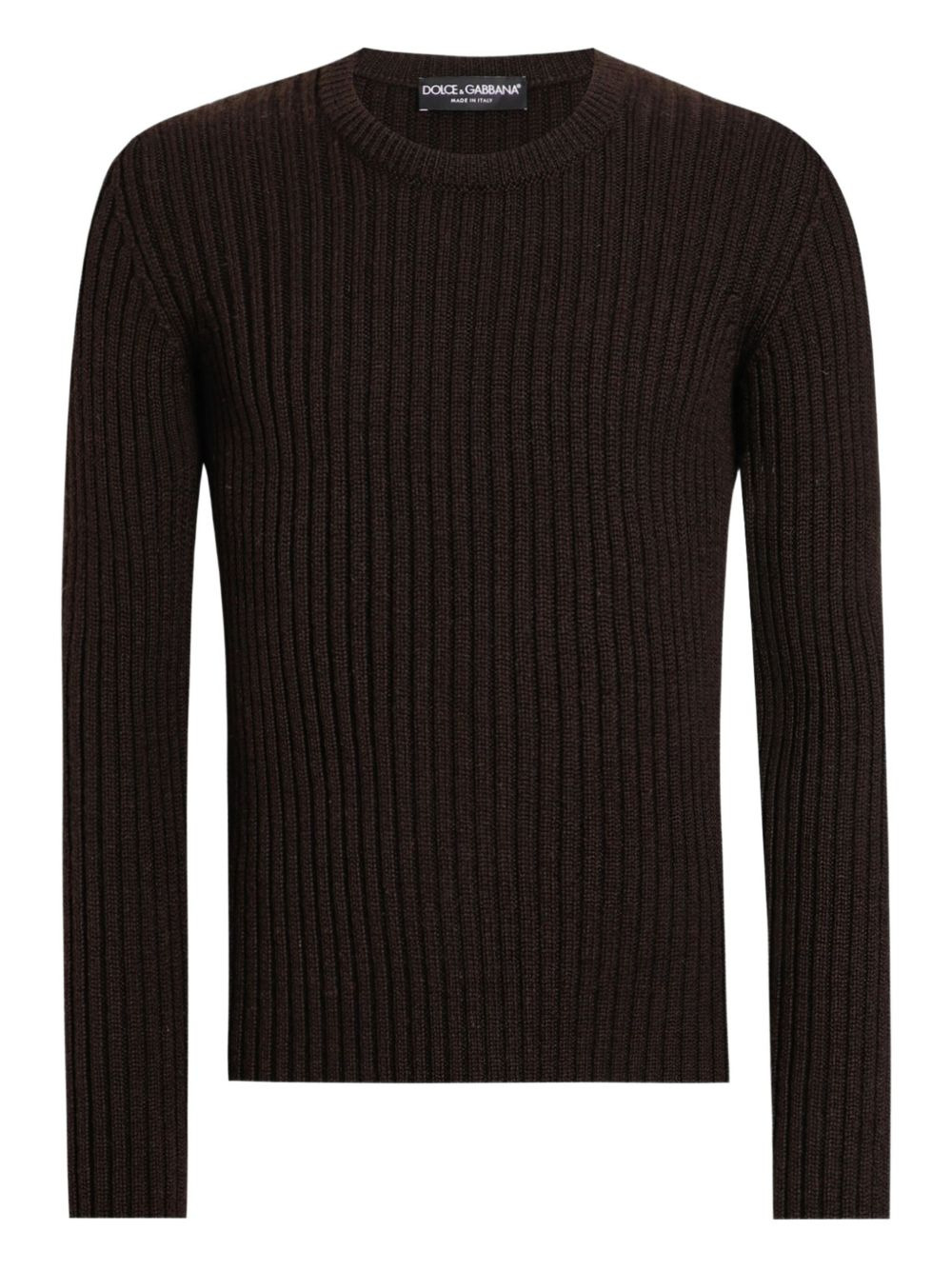 ribbed knit jumper Highlights - Dark brown - Ribbed knit - Round neck - Long sleeves - Straight hem Made in Italy Composition Wool 100% Washing instructions Read Manufacturer Guidelines