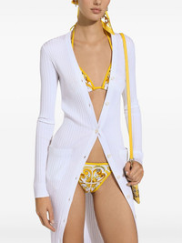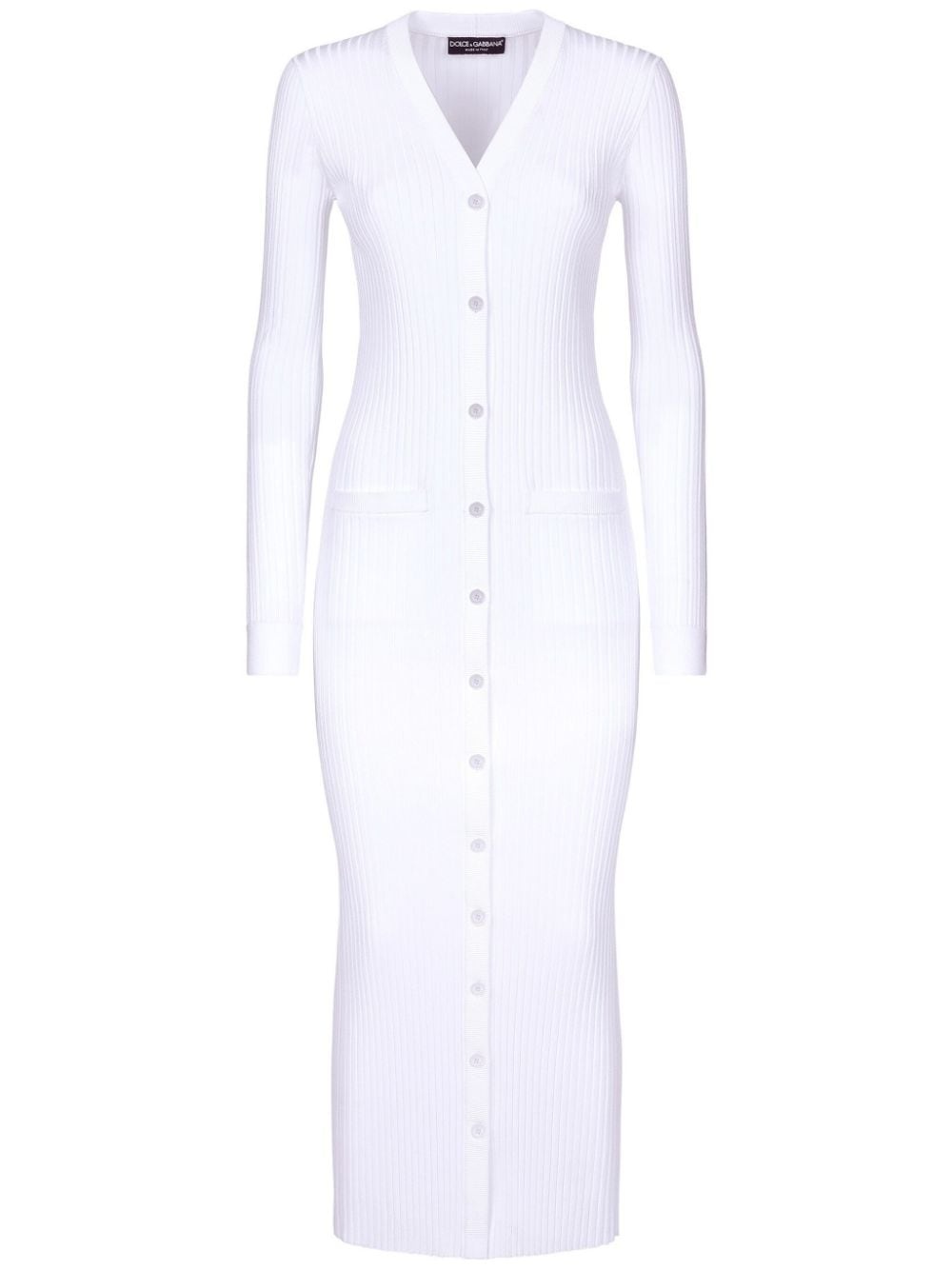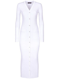 ribbed-knit long cardigan Highlights - Optical white - Ribbed knit - Plunging v-neck - Long sleeves - Front button fastening - Straight hem - Maxi Made in Italy Composition Viscose 100% SIZE & FIT FittingInformation Designed for a close fit throughout