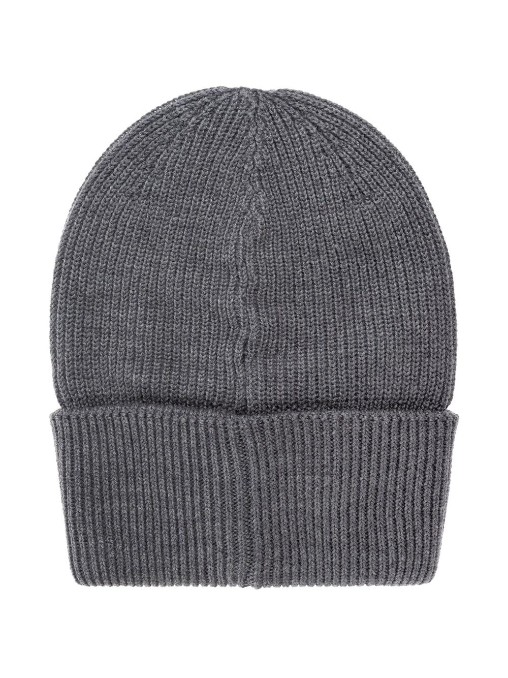 ribbed logo-patch beanie hat Highlights - Grey - Ribbed knit - Folded cuff - Logo patch - Virgin wool - Square patch Made in Italy Composition Virgin Wool 100%