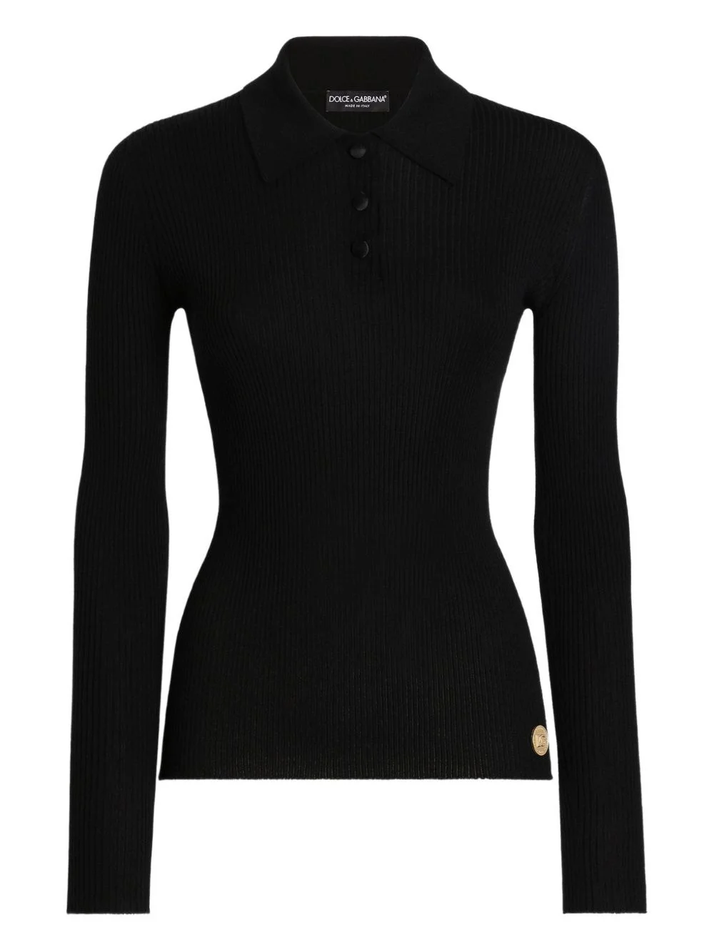 ribbed long-sleeve polo top Highlights - Black - Button closure - Long sleeves Made in Italy Composition Cashmere 100% Washing instructions Read Manufacturer Guidelines