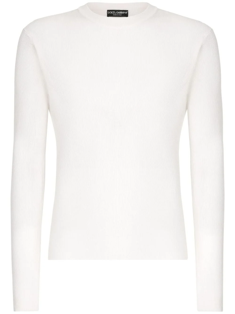 ribbed silk crew neck jumper Spun from delicate silk to a finely ribbed knit, this white top from Dolce & Gabbana is cut to a silhouette-hugging crew neck fit and kept free from decorations for an understated flair. Highlights - White - Silk - Ribbed knit - Crew neck - Front button fastening - Long sleeves - Straight hem Made in Italy Composition Silk 100% Washing instructions Read Manufacturer Guidelines