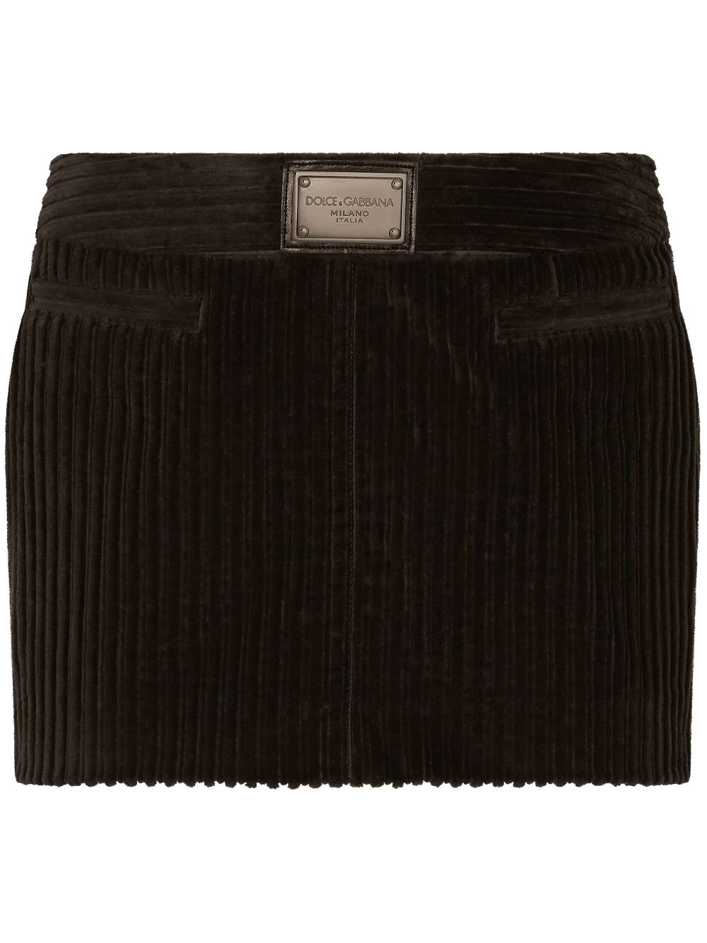 ribbed velvet mini skirt Highlights - Coffee brown - Stretch-cotton - Ribbed detailing - Velvet - Logo plaque - Concealed rear zip fastening - Low-rise - Straight hem - Thigh-length Made in Italy Composition Lining: Polyester 97%, Elastane 3% Outer: Cotton 98%, Elastane 2% Washing instructions Read Manufacturer Guidelines