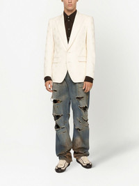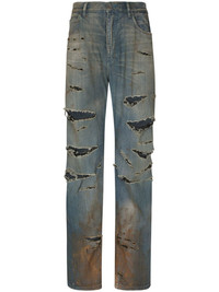 ripped-detail distressed jeans blue/orange cotton denim ripped detailing distressed finish concealed fly and button fastening belt loops classic five pockets logo plaque straight leg Made in Italy Composition Cotton 100% Washing instructions Read Manufacturer Guidelines
