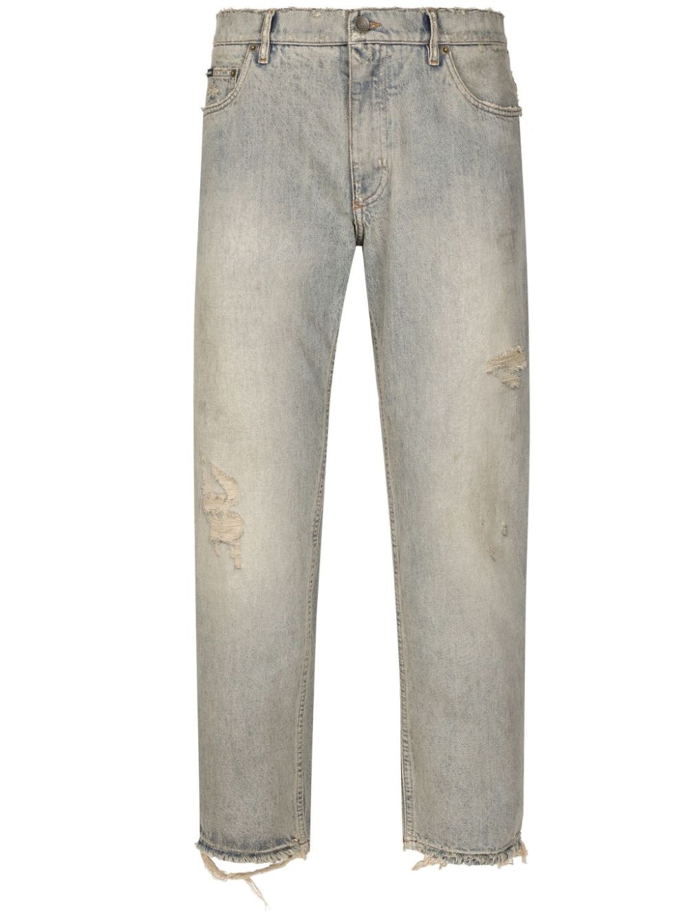 ripped jeans Highlights - Light blue - Cotton - Denim - Logo plaque - Faded effect - Ripped detailing - Belt loops - Concealed fly and button fastening - Straight leg - Frayed hem Made in Italy Composition Cotton 100%