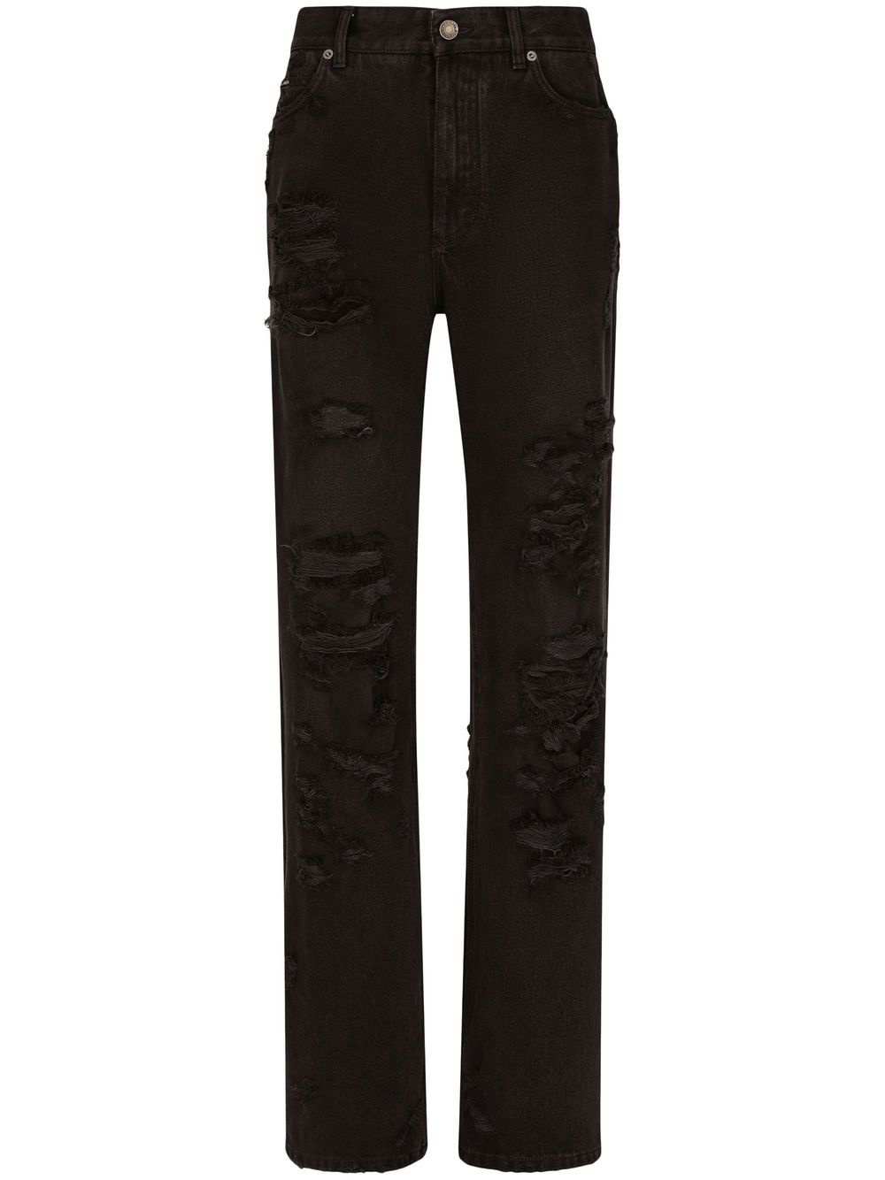 distressed flared jeans Cut for a slouchy relaxed fit, these faded black jeans from Dolce & Gabbana are infused with the Italian house's bold take on denim. Here, ripped accents punctuate their straight leg for a worn-in and distressed look. Highlights - Ripped straight-leg jeans from dolce & gabbana featuring black, cotton, high-waisted, straight leg, ripped detailing, front button and zip fastening, belt loops and classic five pockets. Made in Italy Composition Cotton 100%