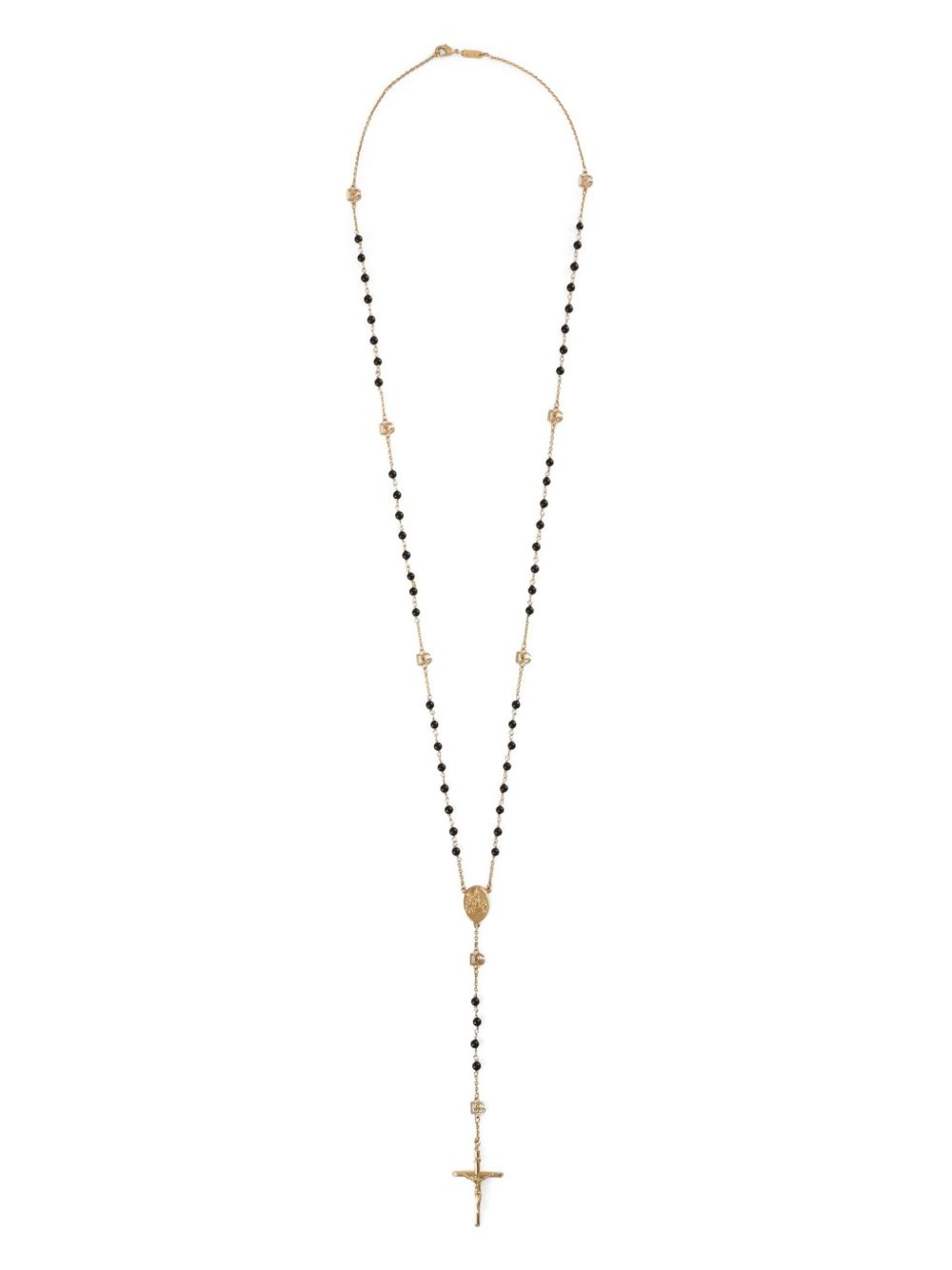 Rosary necklace Highlights - Gold-tone - Lobster claw fastening - Cross pendant - Logo plaque Made in Italy