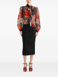 Rose-print chiffon blouse Highlights - Black - Rear press-stud fastening - Pussy-bow collar - Gathered detailing - Elasticated cuffs Made in Italy Composition Silk 100%