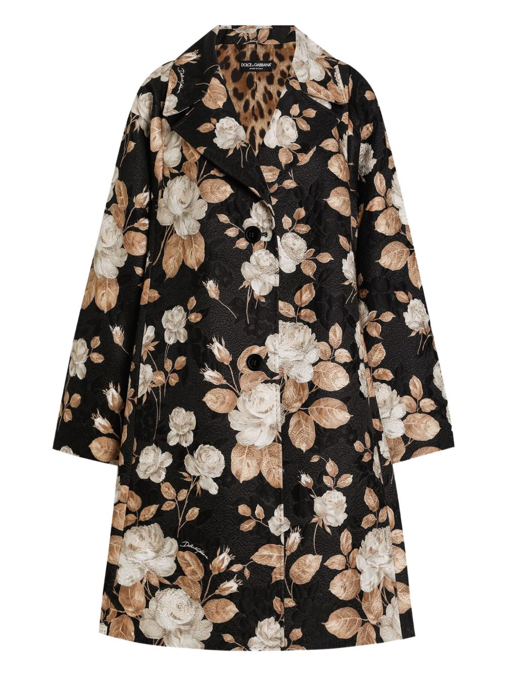 rose-print coat Highlights - Black - Rose print - Button fastening - Long sleeves Made in Italy Composition Cotton 86%, Silk 10%, Viscose 4% Washing instructions Read Manufacturer Guidelines
