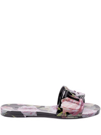 rose-print slides Highlights - Black - Round open toe - Branded insole - Cut-out logo detailing Made in Italy Composition Other fibres 100%
