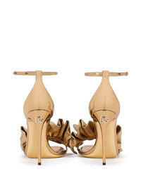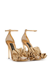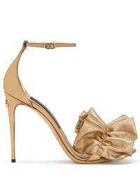ruched-detail metallic sandals Dolce & Gabbana's sandals are punctuated with oversized ruched detailing at the front. Resting on a high stiletto heel, the striking detail on this gold-tone pair envelops the open toe. Made in Italy Composition Outer: Calf Leather 60%, Polyurethane 30%, Polyester 10% Lining: Goat Skin 90%, Calf Leather 10% Sole: Leather 100%