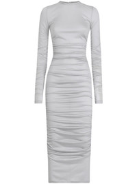ruched dress Highlights - Light grey - Jersey texture - Ruched detailing - Concealed rear zip fastening - Round neck - Long sleeves - Mid-length Made in Italy Composition Outer: Virgin Wool 100%