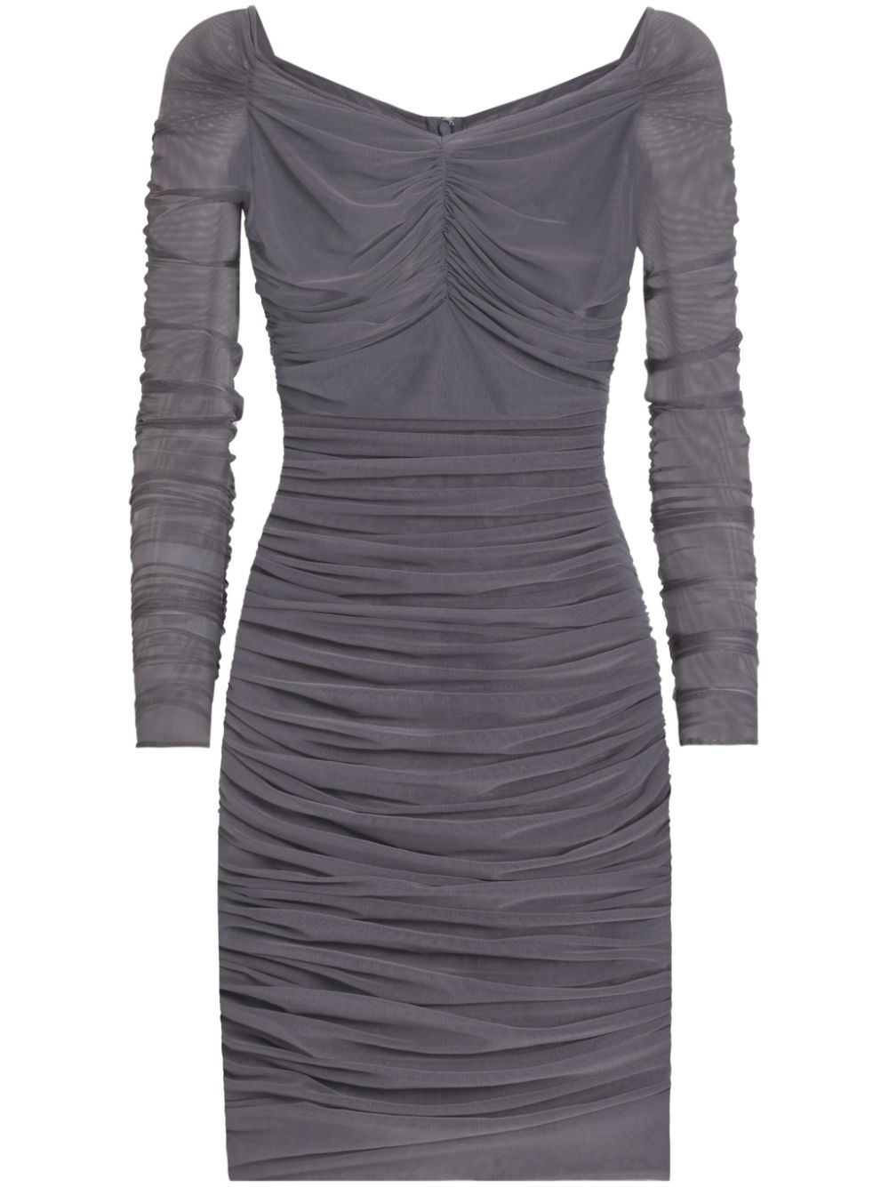 ruched mini dress Highlights - Medium grey - Semi-sheer construction - Ruched detailing - Thigh-length - Concealed rear zip fastening - Sweetheart neck - Long sleeves Made in Italy Composition Outer: Polyamide 82%, Spandex/Elastane 18% Lining: Polyamide 82%, Spandex/Elastane 18%