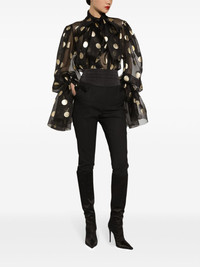 Silk organza jacquard blouse with polka-dot design and pussy-bow