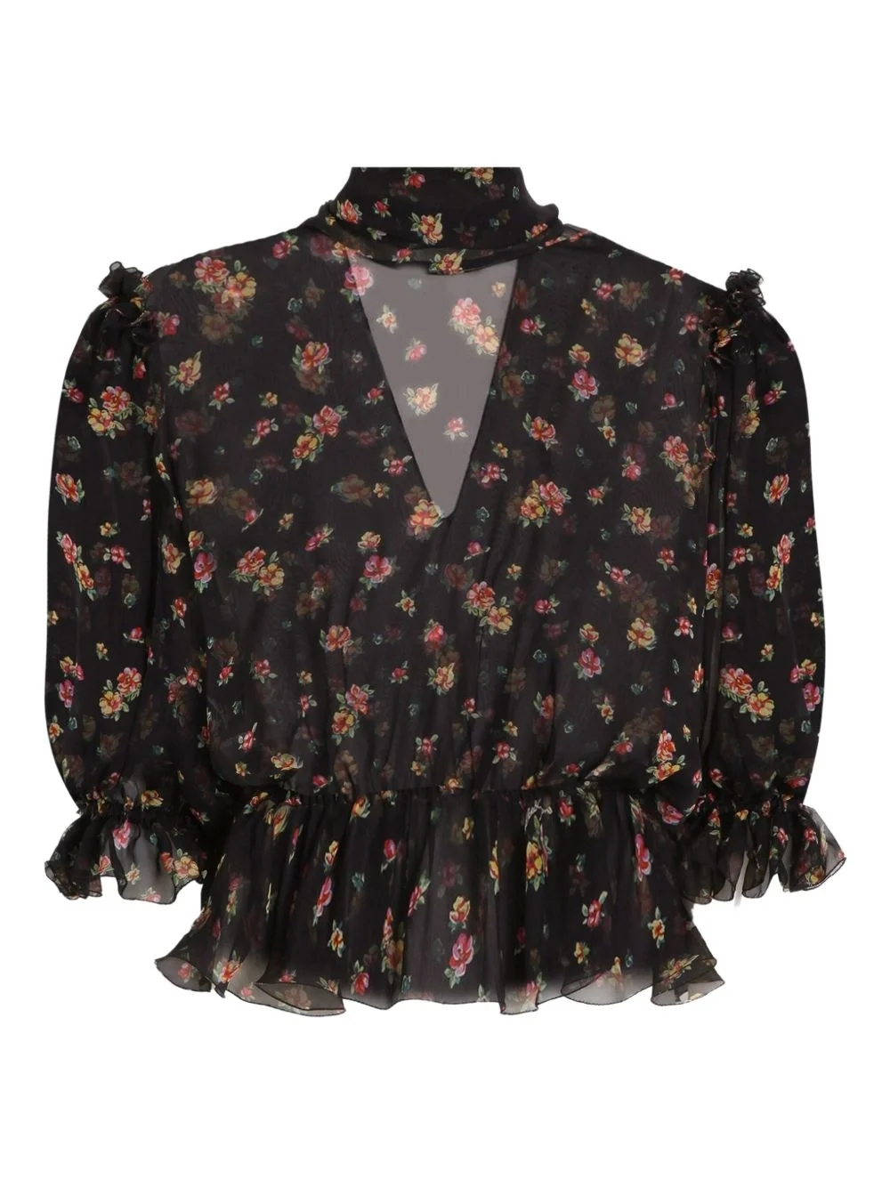 ruffled floral blouse Highlights - Black - Floral print - V-neck - Short sleeves - Ruffled details Made in Italy Composition Silk 100% Washing instructions Read Manufacturer Guidelines