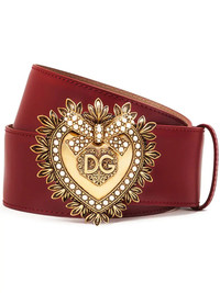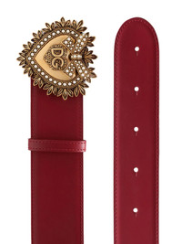 Devotion leather belt Poppy red/gold-tone calf leather sacred heart belt from DOLCE & GABBANA. Highlights - Poppy red/gold-tone calf leather sacred heart belt from dolce & gabbana featuring faux pearl embellishment, push-lock fastening and dg sacred heart buckle. your purchase will arrive with a gift box. Made in Italy Composition Calf Leather 100% SIZE & FIT Measurement Minimum Length 26.77 in(68 cm) TOTAL LENGTH 30.7 in(78 cm) WIDTH 1.96 in(5 cm)