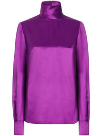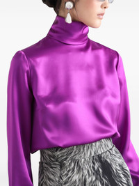 satin blouse Highlights - Purple - Satin finish - Concealed rear zip fastening - Roll neck - Long sleeves - Buttoned cuffs - Straight hem Made in Italy Composition Outer: Silk 100% Washing instructions Read Manufacturer Guidelines