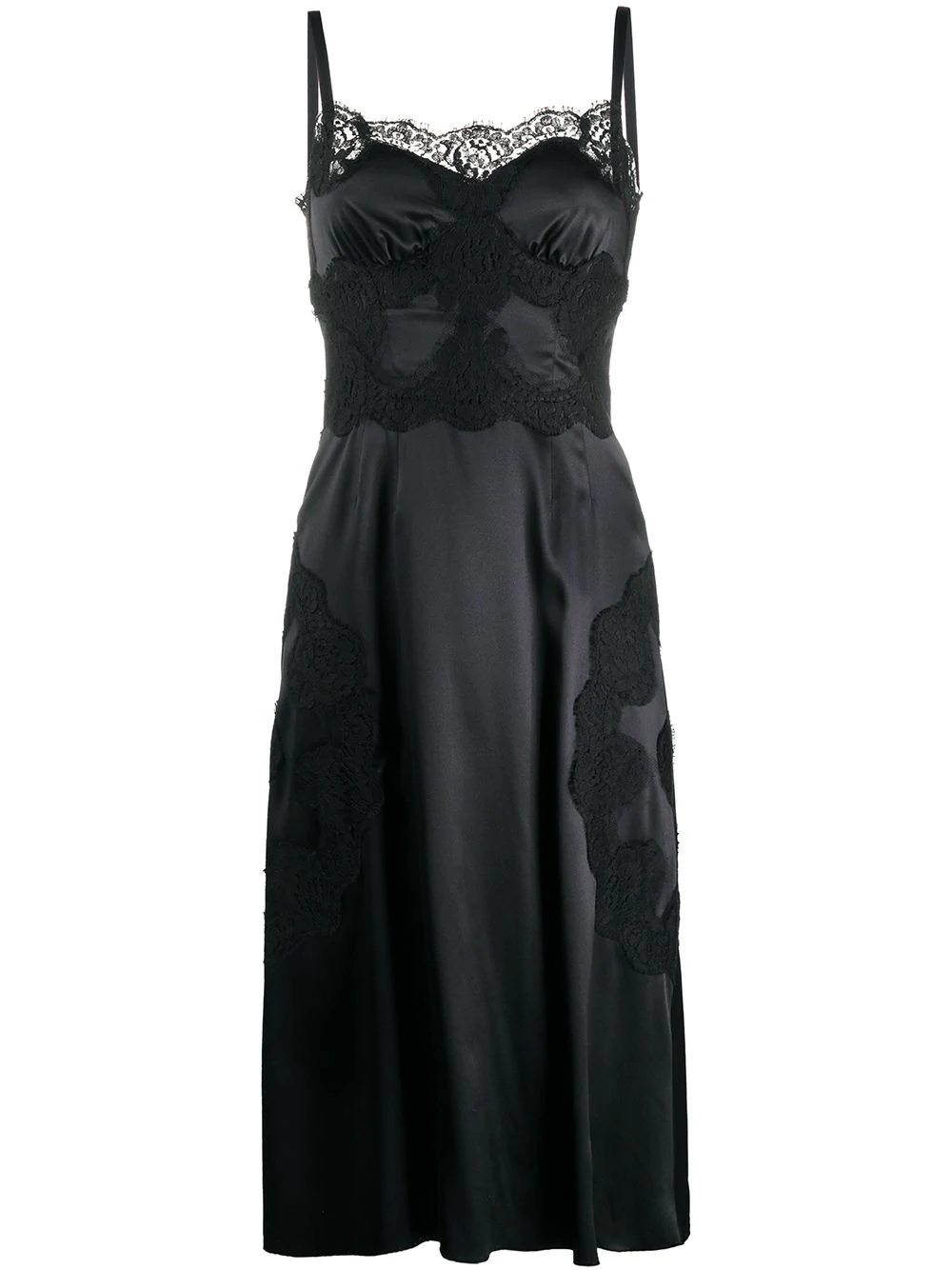 satin slip dress It's time for nightwear to make a daytime appearance. With a slip-inspired design, this satin lace-trim dress from Dolce & Gabbana is comfortable as well as stylish. What a winning combo. Highlights - Black - Silk-cotton blend - Lace trim - Satin finish - Spaghetti straps - Rear zip fastening - Mid-length Made in Italy Composition Outer: Silk 67%, Cotton 24%, Polyamide 6%, Spandex/Elastane 3% Lining: Silk 96%, Spandex/Elastane 4% SIZE & FIT Model measurements Height 5 ft 10 in(1.78 m) Bust/Chest 31.49 in(80 cm) Hips 36.22 in(92 cm) Waist 25.59 in(65 cm) FittingInformation This piece fits true to size. We recommend you get your regular size Designed for a close fit at the bust, waist and hips Made with a lightweight stretch fabric Washing instructions Dry Clean Only