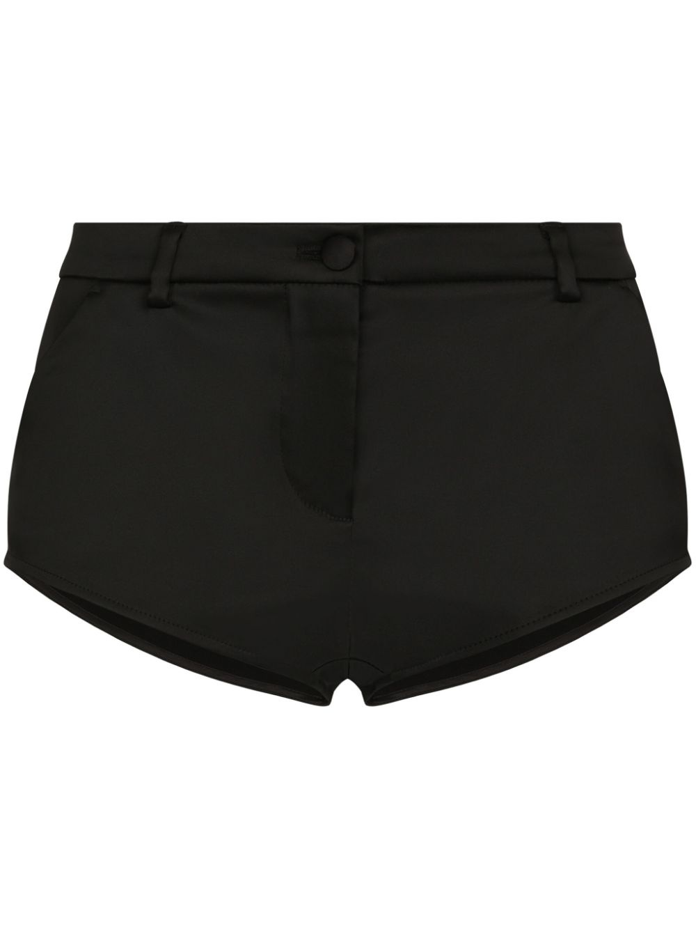 satin mini shorts Highlights - Black - Satin weave - Belt loops - Concealed fly and button fastening - Two side slash pockets - Two rear welt pockets - Thigh-length - Curved hem Made in Italy Composition Acetate 75%, Polyamide 22%, Spandex/Elastane 3% Washing instructions Read Manufacturer Guidelines