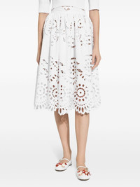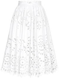 scallop cut-out skirt Highlights - White - Cotton - Cut-out detailing - Scallop print - High-waisted - Concealed rear fastening - Calf-length Made in Italy Composition Cotton 95%, Polyester 5%