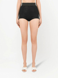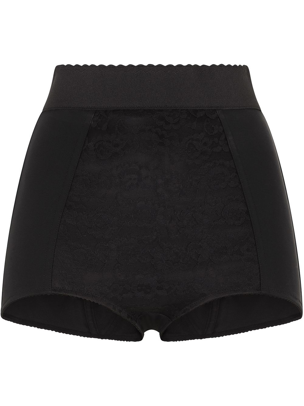 high-waisted jacquard briefs Highlights - Black - Stretch design - Lace detailing - Scalloped waistline Made in Italy Composition Outer: Nylon 87%, Elastane 13% SIZE & FIT Measurement INSIDE LEG 1.49 in(3.8 cm) BACK RISE 14.01 in(35.6 cm) HIPS 25.98 in(66 cm) WAIST 22 in(55.9 cm)